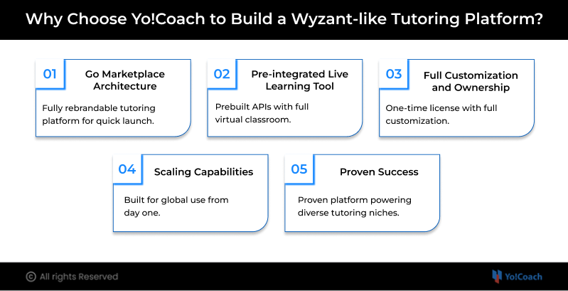 For entrepreneurs aiming to launch a profitable online tutoring platform without the high cost and lengthy timeline of custom development, Yo!Coach offers a streamlined, purpose-built solution. Moreover, it is specifically designed to replicate the successful business logic of platforms like Wyzant. Further, it is engineered to accelerate time-to-market while ensuring a professional, scalable, and feature-rich environment.