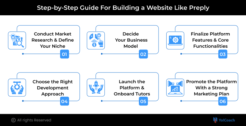Building a platform like Preply requires strategic planning, the right technology, and a clear business roadmap. Furthermore, to successfully launch a tutoring marketplace, you need to align your vision with key features, user needs, and market trends. Here are the essential steps to guide you through the process: