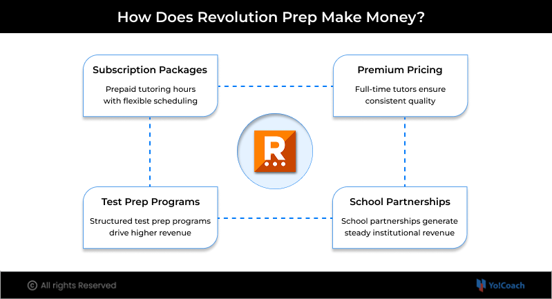 Revolution Prep also partners with schools and educational institutions to deliver supplemental tutoring programs. These partnerships often involve long-term contracts or bulk session commitments, creating a consistent institutional revenue in addition to individual student subscriptions.
