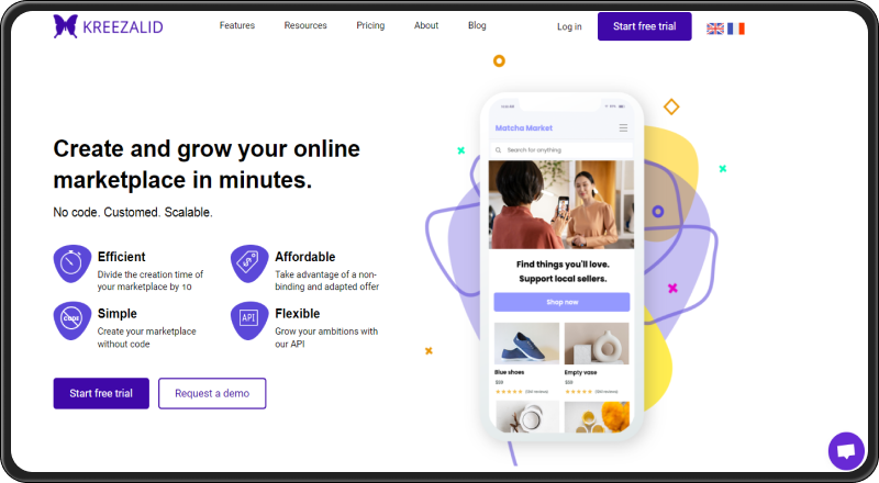 Kreezalid is a SaaS marketplace builder that enables businesses to create and launch online marketplaces without coding. Originally designed for general multivendor marketplaces, it supports physical products, services, rentals, and digital products,  making it adaptable for lightweight consulting or expert marketplaces when paired with additional tools or integrations.