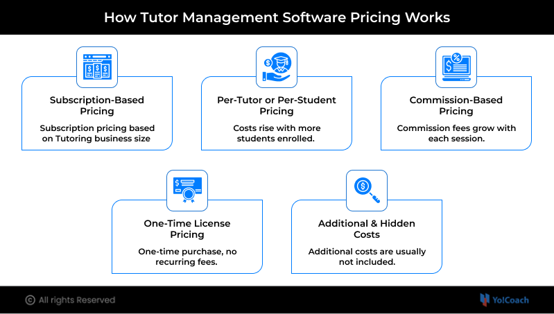 Regardless of the pricing model, tutoring businesses should be aware of the additional costs that are often not included in base plans, such as: